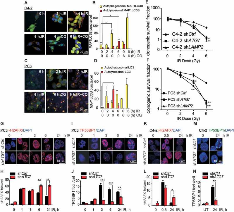 IR治疗可以激活许多肿瘤自噬,而组蛋白H2A和H2AFX/H2AX响应的DNA DSBs泛素化是一种关键的翻译后修饰,具有介导下游信号传导,DNA修复因子募集的作用。因此,作者认为泛素化和去泛素化信号可以有效动态调节DDR。