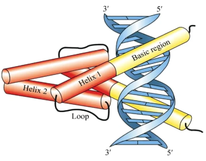 概念:一种蛋白结构基序,碱性螺旋-环-螺旋的二级结构组合。